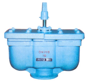 該閥有大小兩個(gè)氣口,大口能大量排氣或吸氣,小口在供水過程中排氣,配套的主管道通徑為 DN400 - DN 1600mm 。